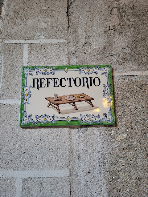 Gary me recogió en el instituto con todo preparado, aprovechando que los jueves salía temprano. Salimos antes de las 12 con 30 grados y un sol inclemente y tiramos millas. Parada en una gasolinera a comernos unos bocatas en el coche y seguimos del tirón, que son muchos kilómetros. En cuanto nos adentramos en La Mancha el cielo se va cubriendo de nubes. Pasamos Toledo lloviendo en dirección Talavera de la Reina hasta Plasencia, que ya es Extramadura, provincia de Cáceres para ser más exactos. Llegamos justo a las 6 de la tarde tras comprobar en Google Maps dónde estaba el Parador y sobre todo el parking, Este último, por cierto, es de los de ascensor, con las dimensiones justitas para un utilitario, ya sabéis a lo que me refiero, como lleves un cochazo, sufres. Como no podía ser de otro modo el Parador de Plasencia (como la mayoría de Paradores de España) es una maravilla. Nos pegamos el homenaje de alojarnos ahí porque hay una oferta para los mayores de 55 años de lunes a jueves. La noche con desayuno nos salió por 155€. ¡Un lujazo! En el caso de Plasencia se trata de un convento de los dominicos del siglo XVI que ha sido remodelado y destaca tanto por su claustro, como por sus jardines, el refectorio o las habitaciones, celdas. Vamos, todo el edificio en sí. A nosotros encima nos promocionaron y nos dieron una suite por el mismo precio, mola, esto de ser mayor, jeje. ¡Una pasada!